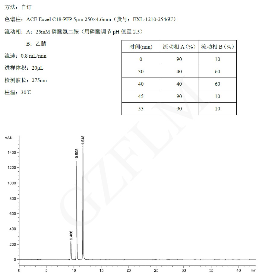 ACE C18-PFP的鍵合相是將C18鏈與PFP官能團相結(jié)合,在保持C18相的疏水性、穩(wěn)定性的同時,也提供了PFP相的多重保留機制。