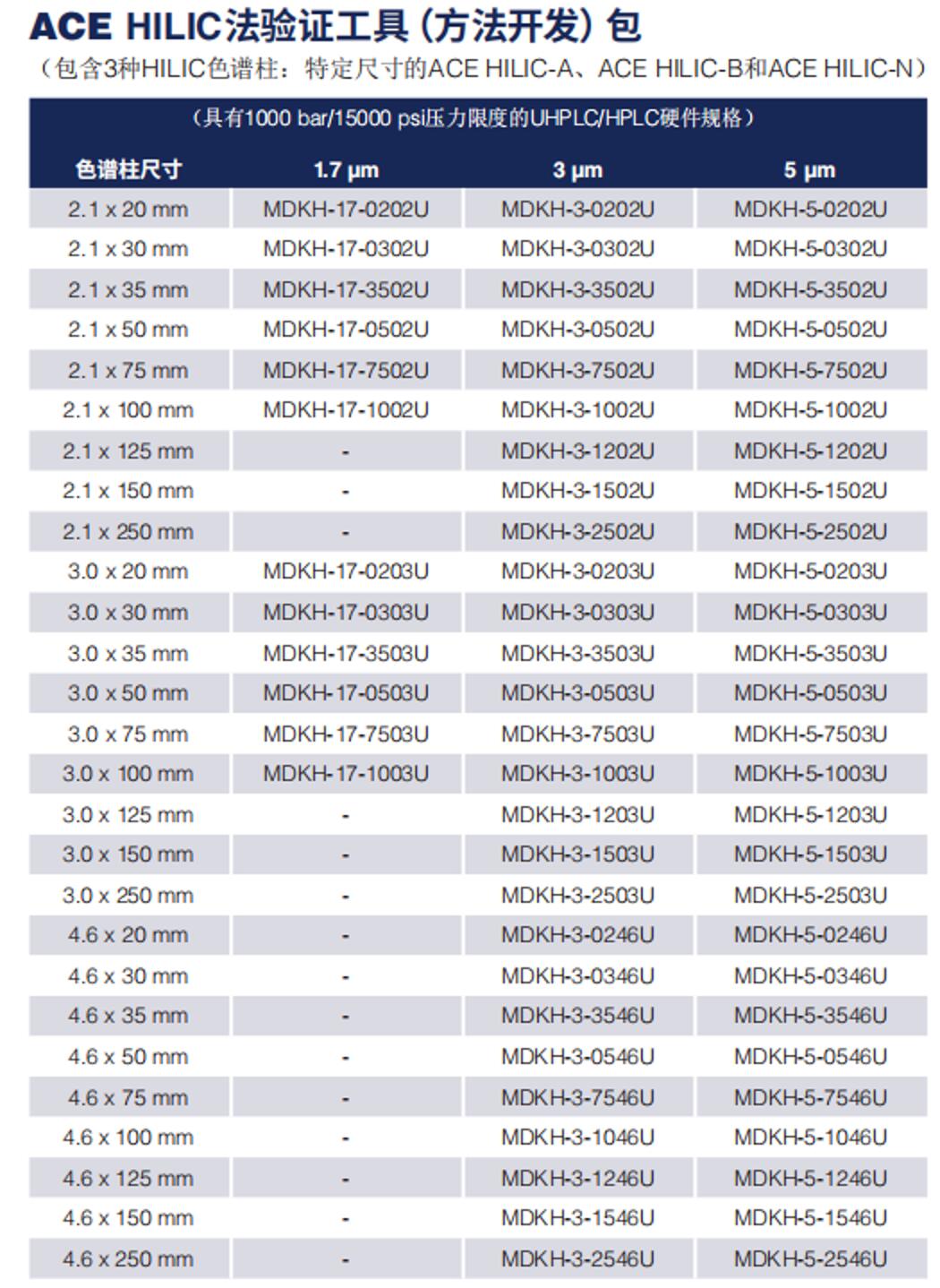 可選擇中性或者酸性、堿性都可以。ACE提供市面常見的酸性(Hilic-A)、堿性(Hilic-B)、中性(Hilic-A)三種固定相Hilic色譜柱方法開發包,可作為分析工作者的首選工具。