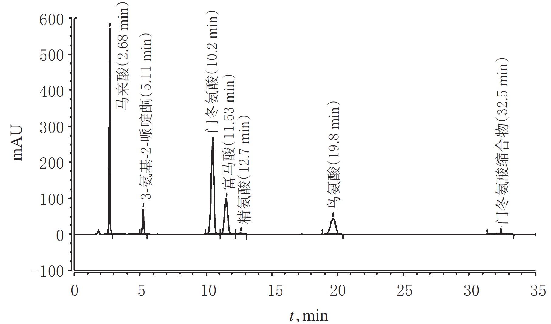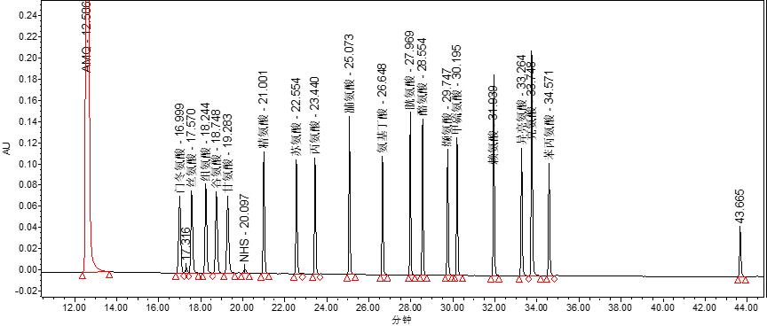 通過衍生反應(yīng)在氨基酸上接上疏水且有紫外吸收的基團(tuán),可以實(shí)現(xiàn)在C18柱+反相流動相的體系下進(jìn)行HPLC分析。