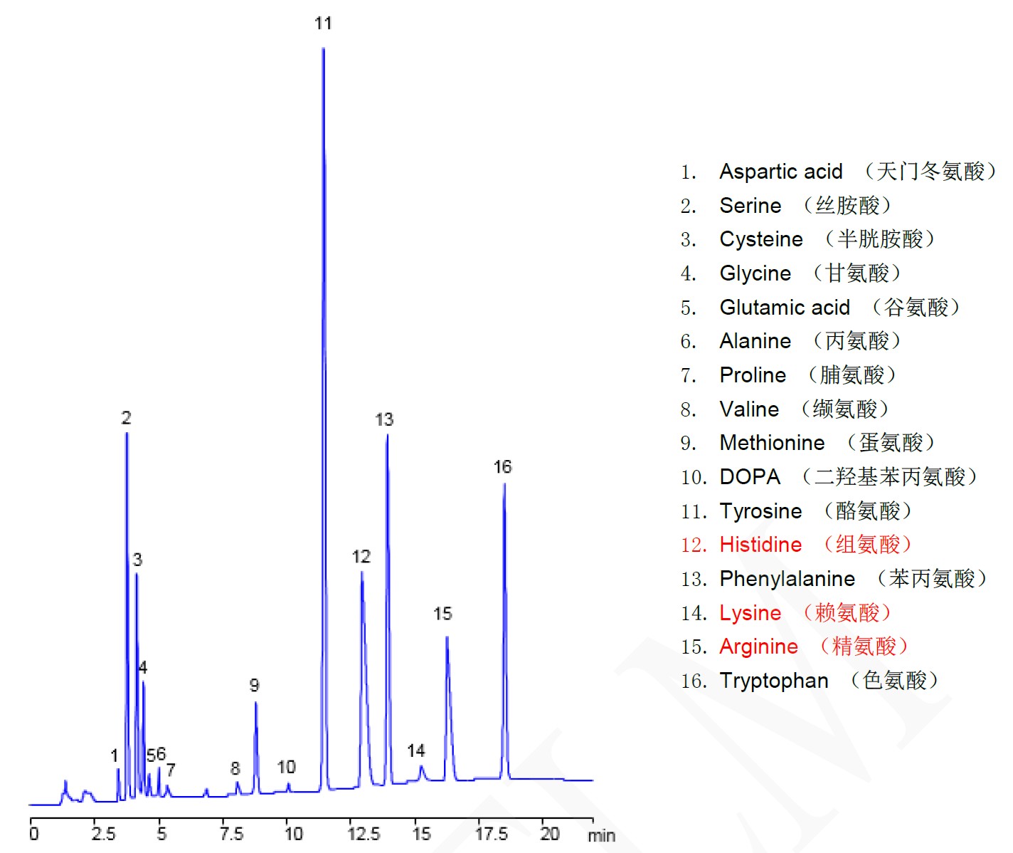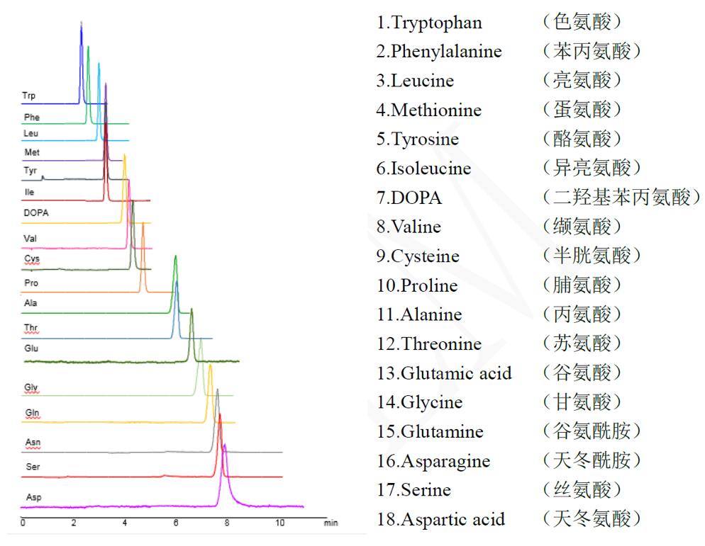 大部分氨基酸由于至少同時(shí)含有大極性的氨基和羧基,因此整體極性很大,常用的C18柱+反相流動相對其保留很弱,同時(shí)部分氨基酸由于紫外吸收很弱,因此讓流動相和檢測器的選擇更有挑戰(zhàn)。