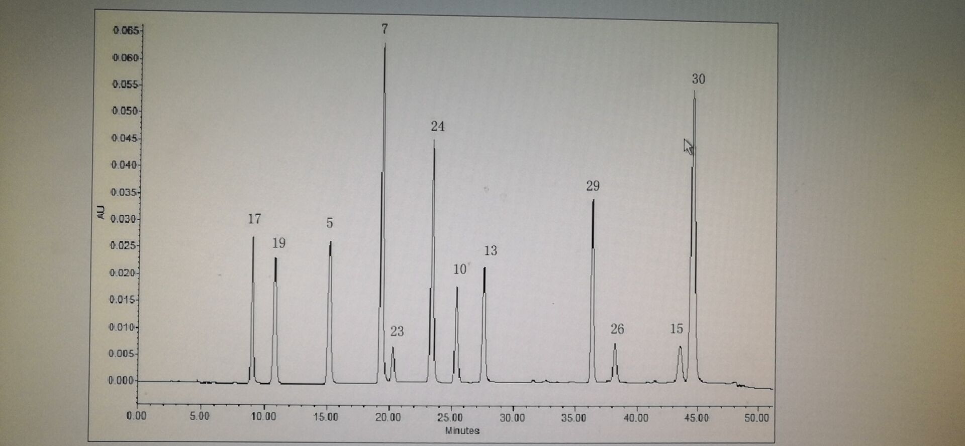 17:間苯二胺;19:氫醌;5:鄰苯二胺;7:鄰氨基苯酚;23:對甲基氨基苯酚硫酸鹽;24:4-硝基鄰苯二胺;10:甲苯-3,4- 二胺;13:6-氨基間甲酚;29:2,7-萘二酚;26:N,N-二乙基對苯二胺硫酸鹽;15:N,N-二乙基甲苯-2,5-二胺鹽酸鹽;30:N- 苯基對苯二胺