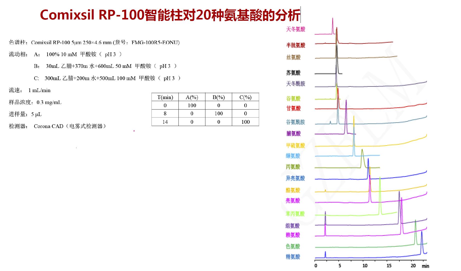 Comixsil RP-100智能柱對20種氨基酸的分析