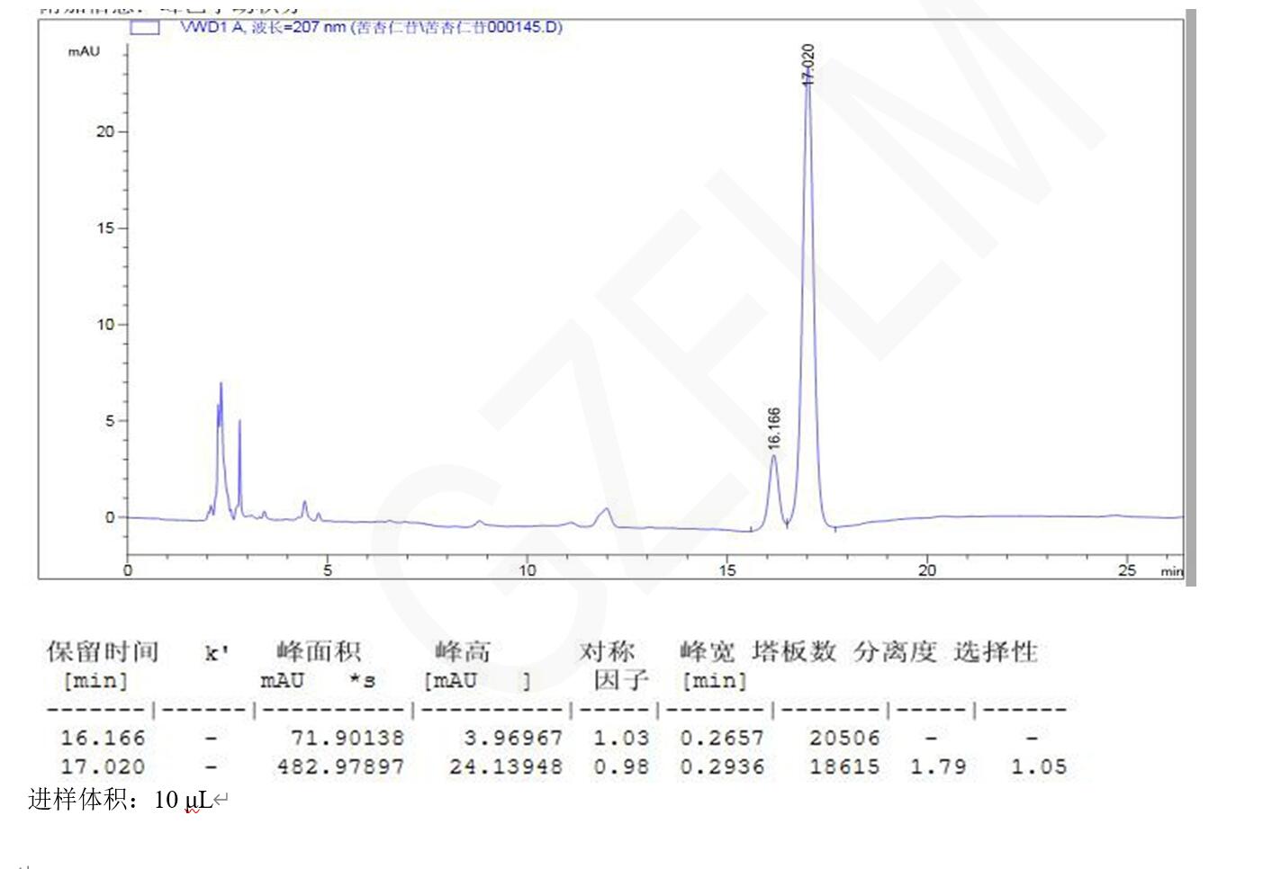 高效液相色譜柱對苦杏仁中苦杏仁苷的檢測