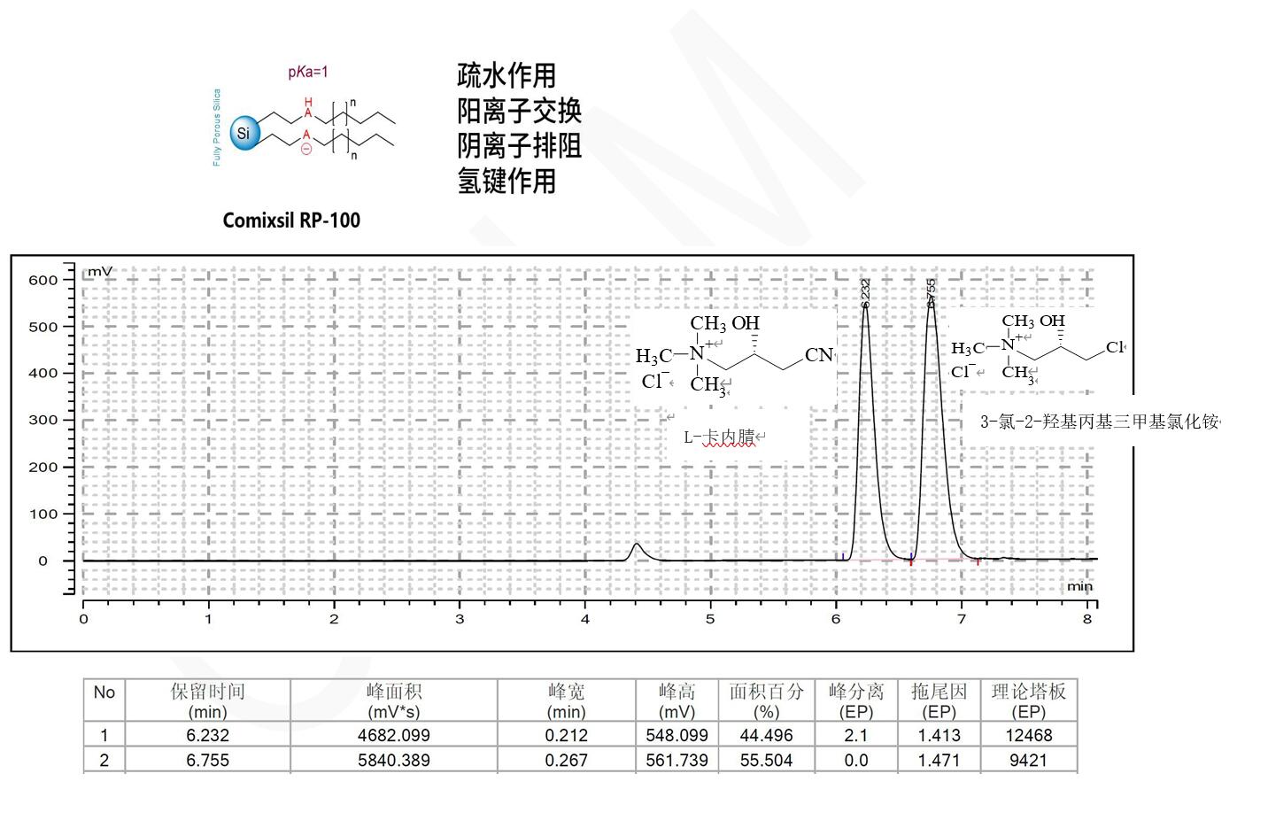 Comixsil RP-100 混合模式對 L-卡內腈和 3-氯-2-羥基丙基三甲基氯化銨的分析