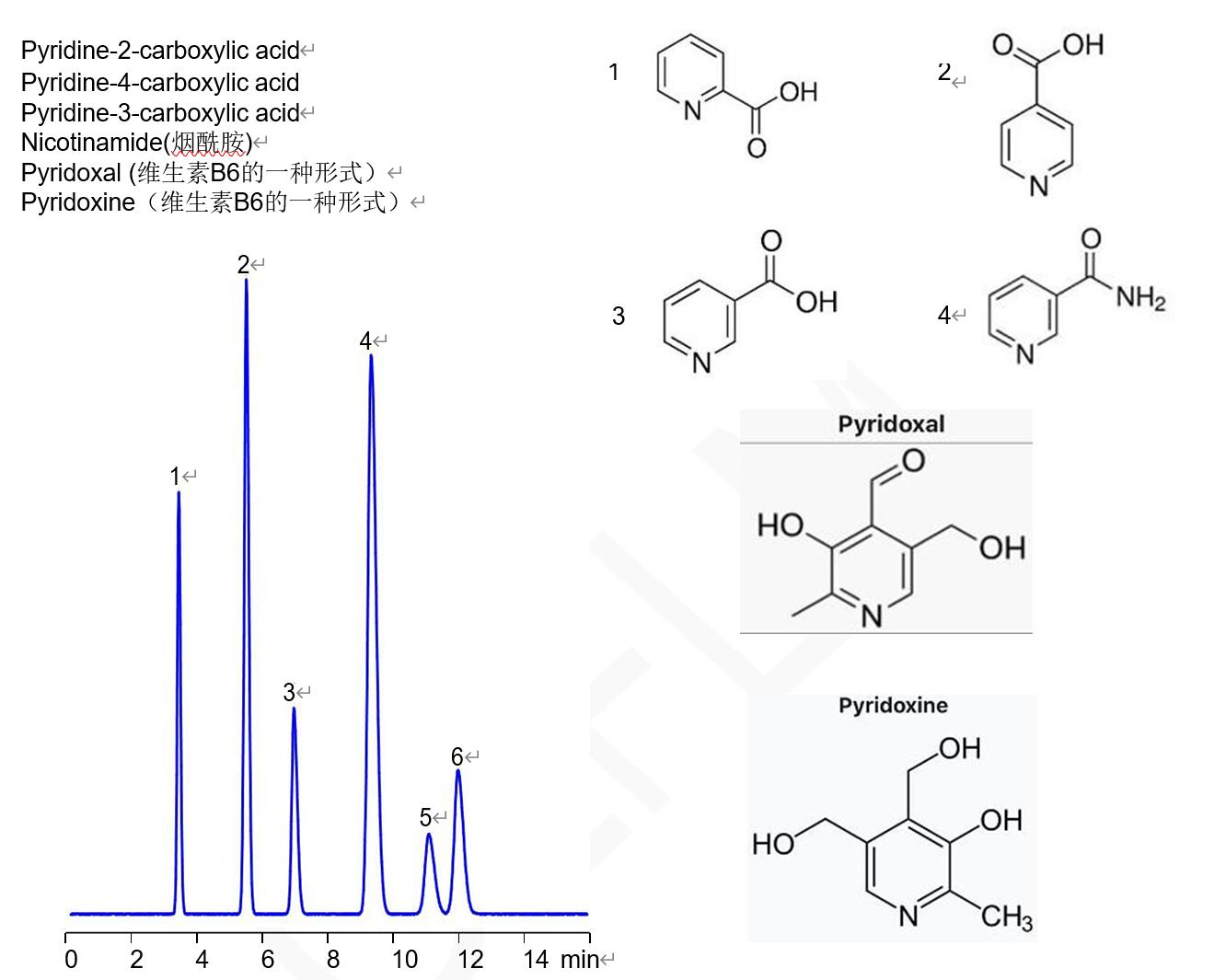 Comixsil RP-100分析VB6兩種結構以及與煙酰胺吡啶羧酸位置異構的分離