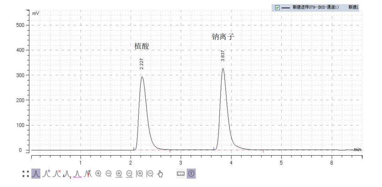 方法說明:液相方法使用 Comixsil HCS 檢測植酸鈉,調整有機相比例、緩沖鹽 pH 可以調整保留時間.