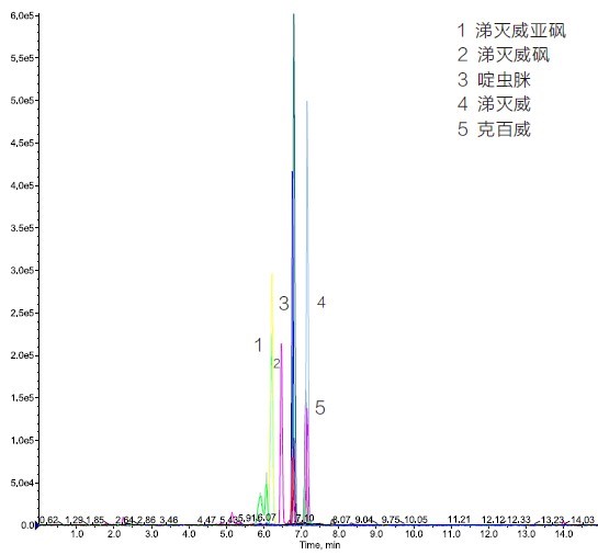 圖 2 添加水平為 0.0625 mg/kg 普洱中氨基甲酸酯類農藥多殘留檢測色譜圖