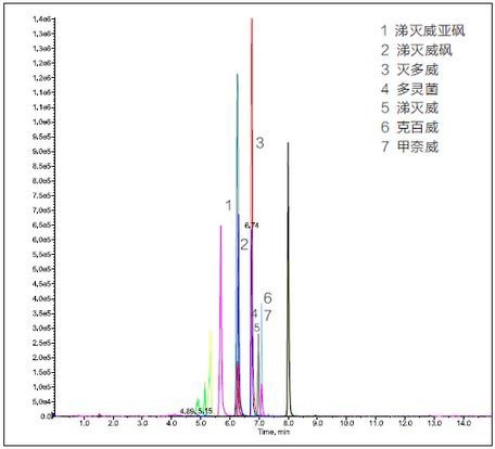氨基甲酸酯類農(nóng)藥各組分名稱、保留時(shí)間及母離子和子離子檢測離子對: