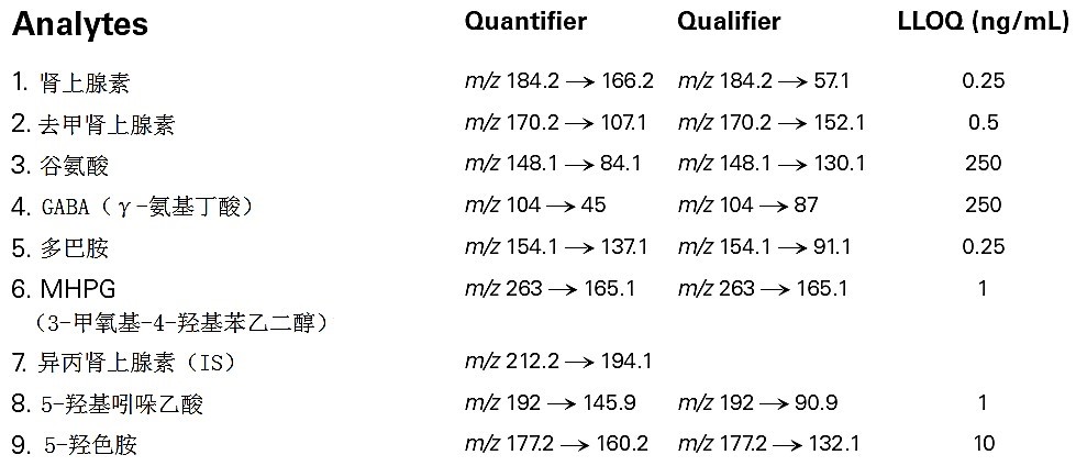 大鼠腦組織中神經遞質及其代謝物的 LC-MS-MS 分析