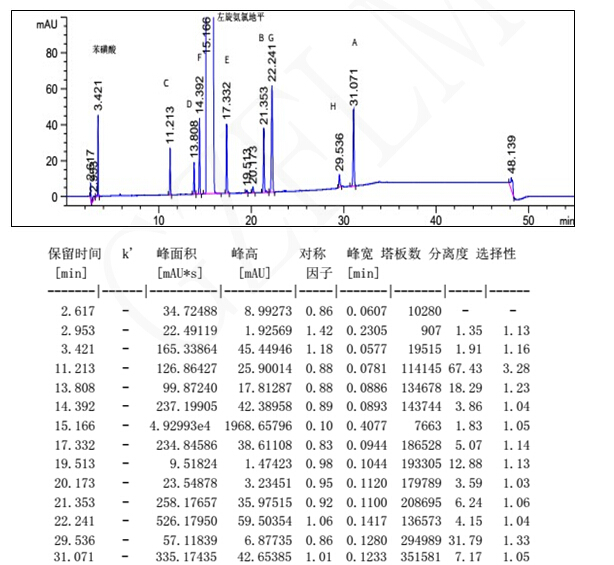 色譜柱:ACE Excel C18-AR 5μm 250×4.6mm(貨號: EXL-129-2546U)