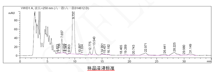 中國藥典規定理論塔板數按甘草酸銨應不低于3000,本試驗實際測出柱效為6143。