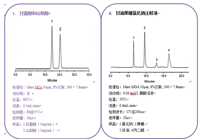 流動相:H2O 流速:0.6 mL/min 檢測器:RID 柱溫:80 ℃ |