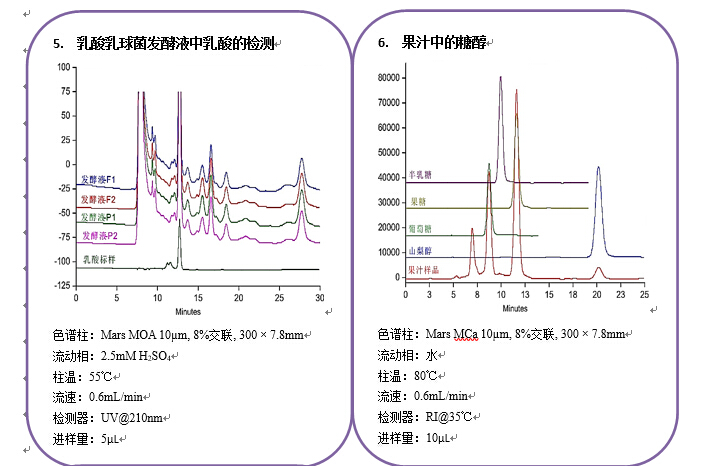 -單糖和糖醇的分析 -木制品中的戊糖和己糖 -含有蔗糖、乳糖等的奶制品 |
